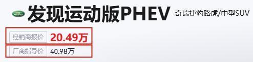 路虎发现运动版PHEV售价40.98万元,现在经销商给出的报价是20.49万元,正好打了个5折。