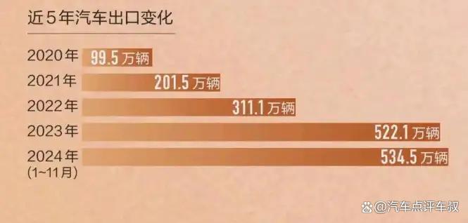 不平凡的2024年已然翻篇,国内汽车行业再度迎来了年终交卷时刻。根据中国海关总署于1月13日所公布的数据来看,2024年我国汽车出口量达到641万台,同比增长23%,这是自2023年我国以522.1万台汽车出口量的数据首次超越日本,成为全国汽车出口第一之后的又一次胜利。尽管当前诸多竞争对手尚未公布全年数据,但是从24年前11个月的数据来看,我国已将竞争对手们远远甩在身后,出口优势持续扩大,蝉联出口第一基本上是板上钉钉。除此之外,在24年中,我国的汽车出口额达到了1,174亿美元,所占中国出口总额也是从去年的1.7%提升到了3.3%。